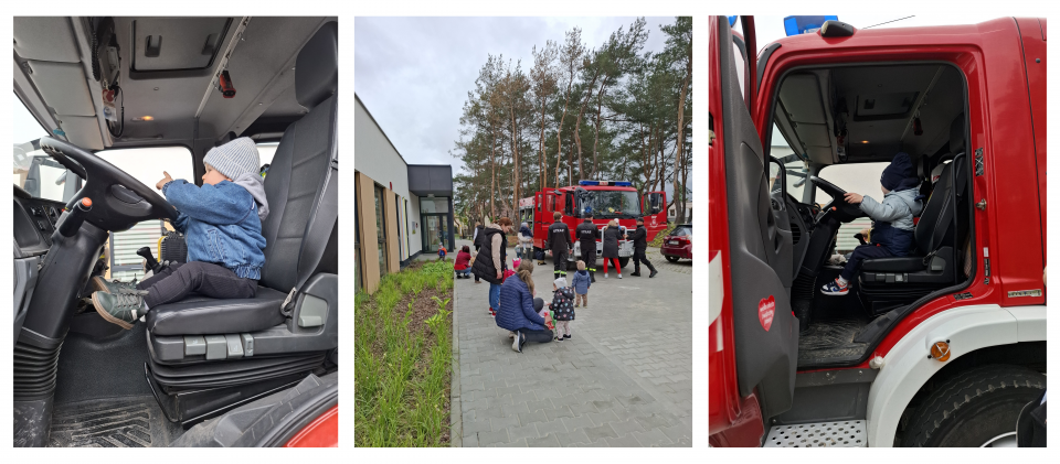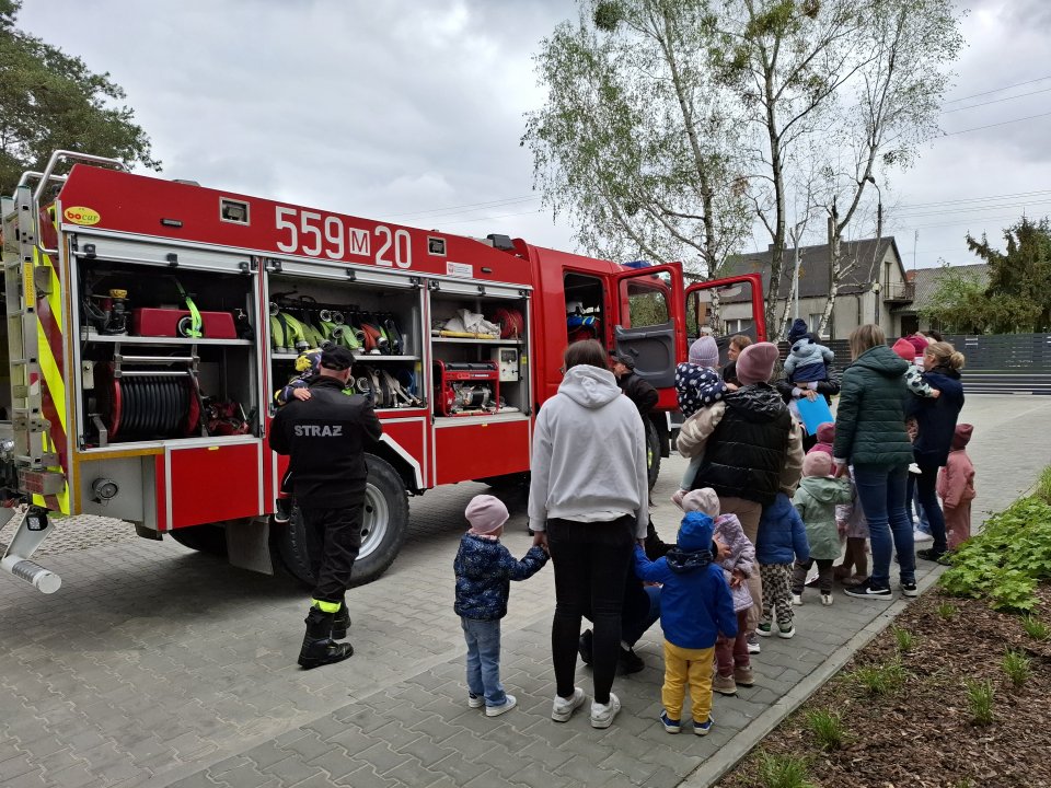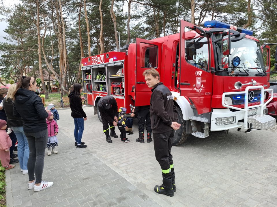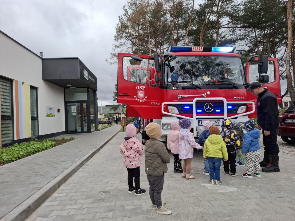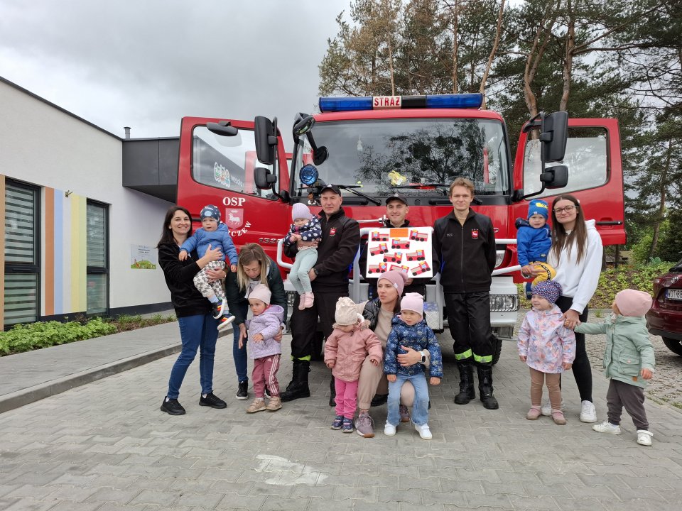 Dzisiejsza wizyta była dla maluchów wyjątkową okazją, by zobaczyć z bliska sprzęt strażacki i porównać zdobytą wiedzę z rzeczywistością. Największą atrakcją był oczywiście czerwony wóz strażacki – dzieci z zachwytem oglądały jego wyposażenie, a wielu chłopców z radością siadało za kierownicą, wyobrażając sobie, że są prawdziwymi strażakami.